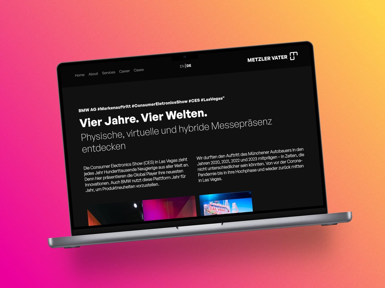 To reflect a strategic realignment and eliminate brand fragmentation, I led the development of a new corporate design and modular website for METZLER VATER – the experience group. The result: one cohesive presence, seamlessly spanning all business areas.